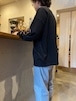 ゆったりシルエットです。特に袖周りのゆとりを大きくもたせ、ほどよくドロップさせた肩回りと袖丈の長さで絶妙なルーズ感を演出しています。